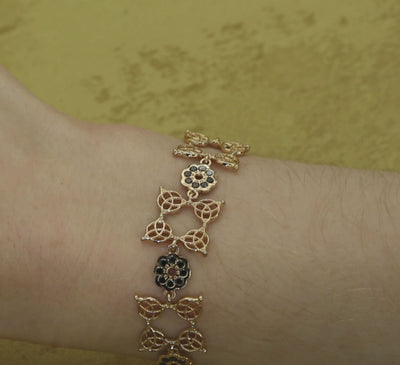 - Diamond Accents: Black diamonds in flower-shaped connectors, total 0.56ct